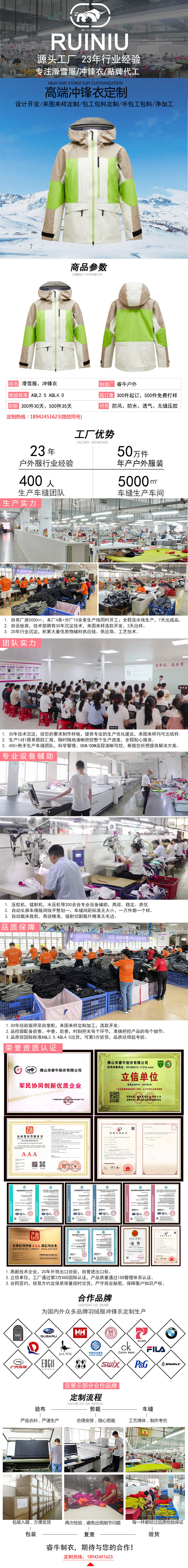 單層防水壓膠沖鋒衣定制生產(chǎn)